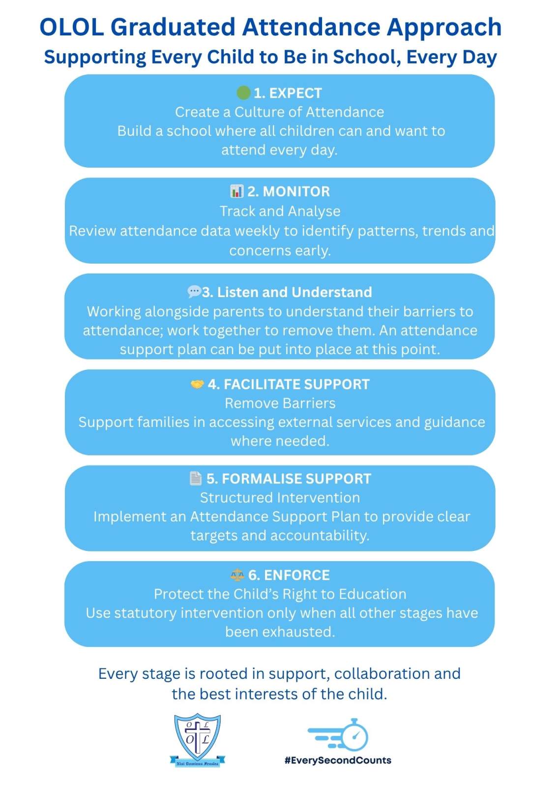 At Our Lady of Lourdes Catholic Primary School, we know that excellent school attendance is the key to successful schooling and we want to ensure our children have the best educational experience possible.