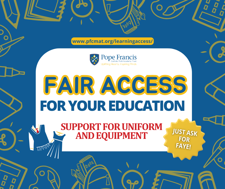 It is integral to the Catholic mission of Pope Francis CMAT that we demonstrate love and service to our community by supporting fair access to educational resources for all pupils.